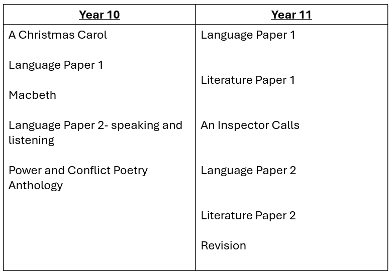 All students at Orchard Mead Academy study English Language and English literature for GCSE during Years 10 and 11.